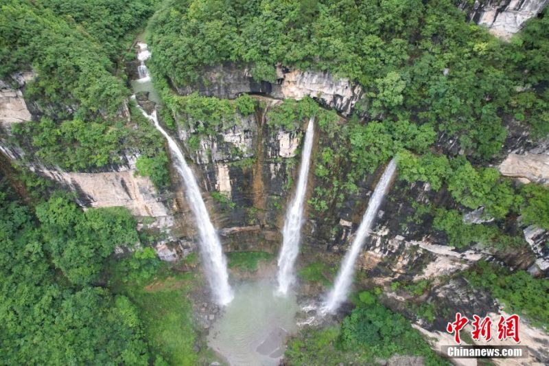 Τριπλοί καταρράκτες πέφτουν από βουνό στο Γκουιτζόου