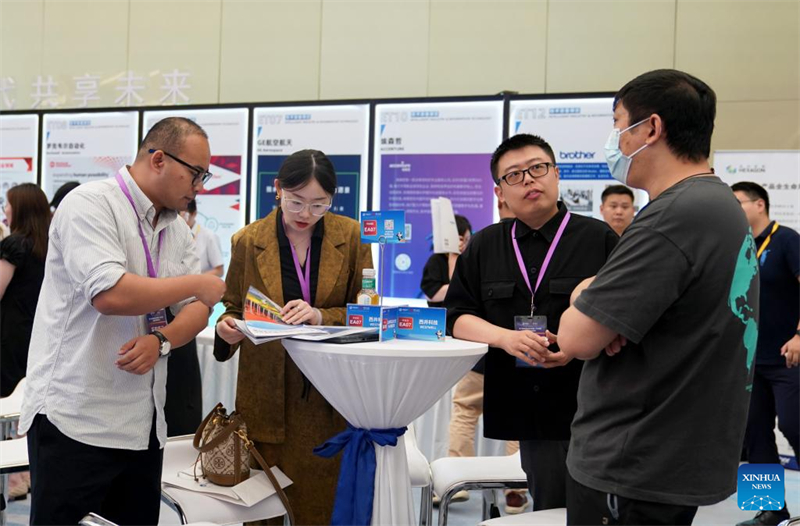 Οι συμμετέχοντες συνομιλούν κατά τη διάρκεια μιας συνάντησης σύνδεσης προσφοράς-ζήτησης, στις 8 Αυγούστου, στο Εθνικό Εκθεσιακό και Συνεδριακό Κέντρο (Σαγκάη) στη Σαγκάη, πριν από την 7η Διεθνή Έκθεση Εισαγωγών της Κίνας.