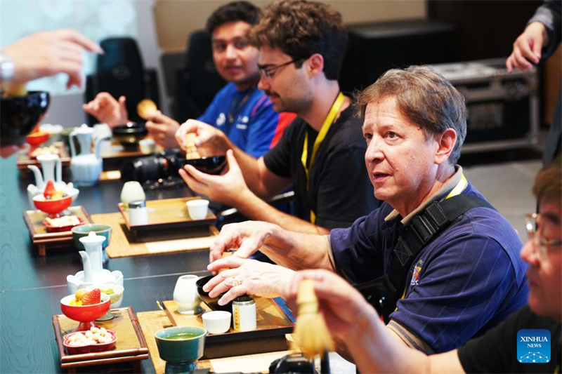 Ο Brian Alan Topolski (πρώτος δεξιά) απολαμβάνει ένα Τσάι Μπάνκετ Jingshan στο Hangzhou, ανατολική επαρχία Zhejiang της Κίνας, 27 Μαρτίου 2025. (Φωτογραφία / Xinhua)