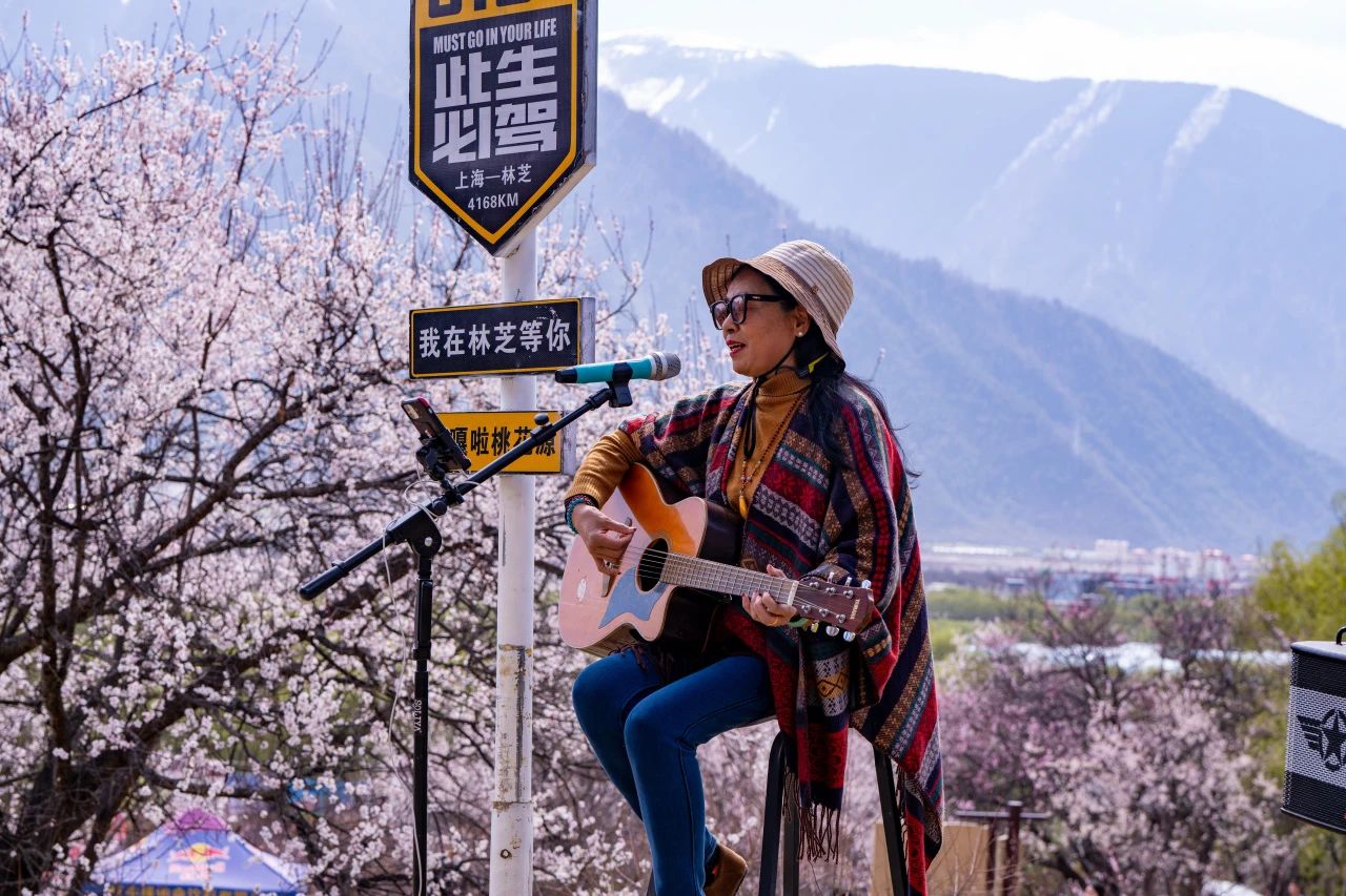 Ένας τουρίστας τραγουδά με την κιθάρα του στο φεστιβάλ ανθισμένων ροδακινιών στη Νινγκτσί, στην αυτόνομη περιοχή Σιζάνγκ, στη νοτιοδυτική Κίνα. (Φωτογραφία / Λαϊκή Ημερησία)