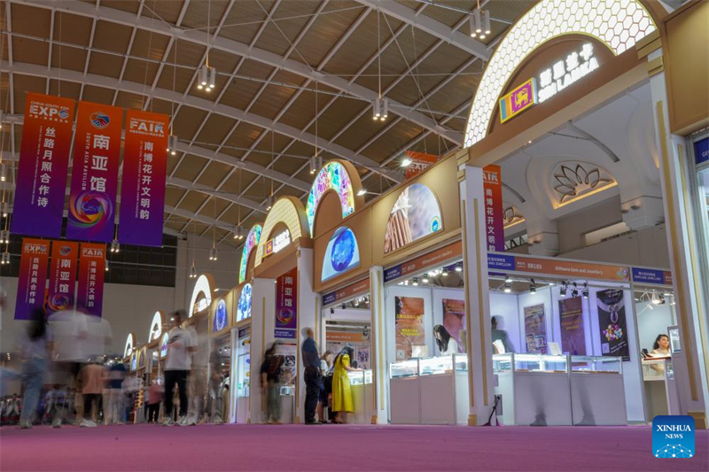 Επισκέπτες στο περίπτερο της Νότιας Ασίας κατά τη διάρκεια της 9ης Έκθεσης Κίνας-Νότιας Ασίας στην πόλη Κουνμίνγκ, της επαρχίας Γιουνάν, στην νοτιοδυτική Κίνα, στις 19 Ιουνίου του 2025. (Φωτογραφία / Xinhua)