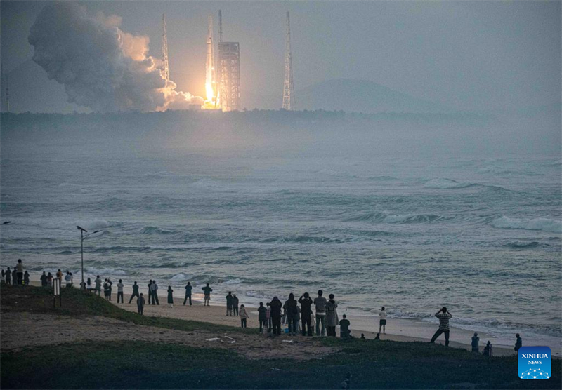 | Άνθρωποι παρακολουθούν την εκτόξευση ενός πυραύλου από το εμπορικό διαστημικό κέντρο εκτόξευσης διαστημοπολοίων της επαρχίας Χαϊνάν στην πόλη Γουεντσάνγκ, στις 12 Δεκεμβρίου του 2025. (Φωτογραφία / Xinhua) |